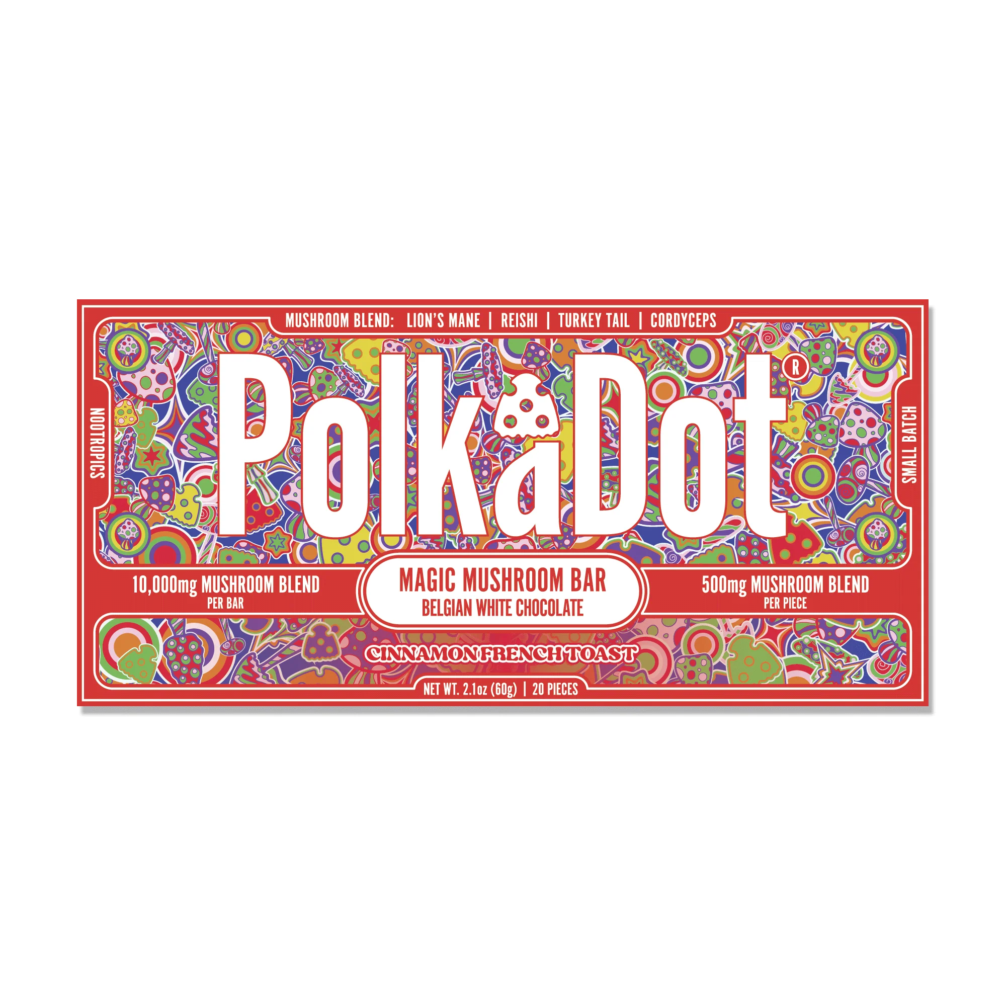 We, the the Polkadot brand, have redefined the edible market by blending gourmet ingredients with potent mushroom formulations.